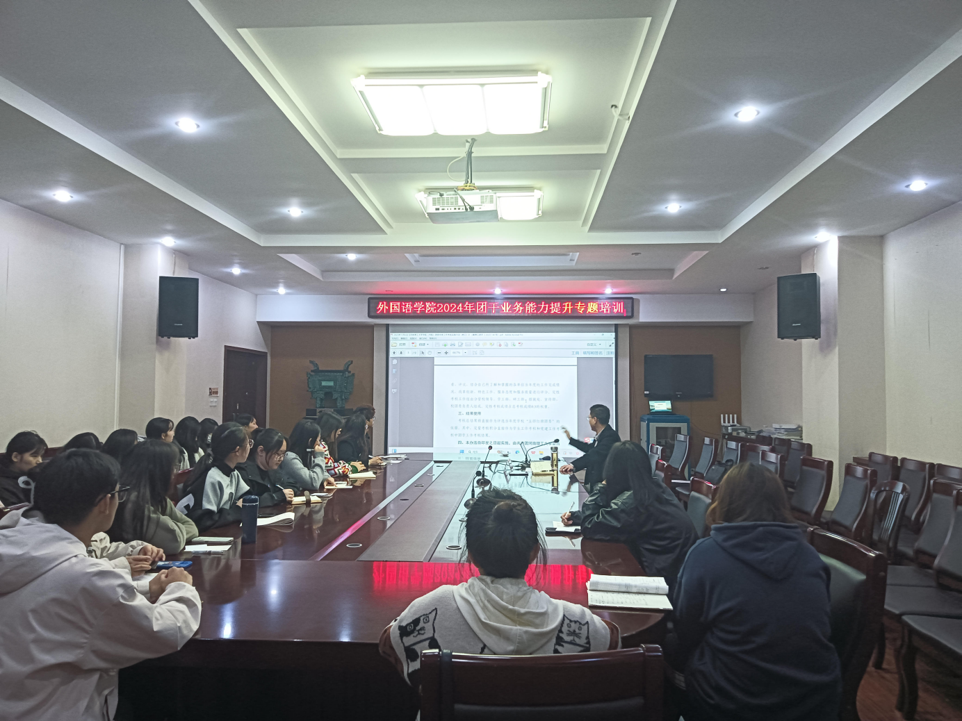 秋风十月,微风吹拂。为深入学习贯彻习近平总书记关于青年工作的重要思想,切实提高我院团员青年和团干部队伍整体素质,不断增强基层团组织的创造力、凝聚力和战斗力,10月22日晚,我院在文综楼311举办了外国语学院2024年团委学生干部业务能力提升专题培训。本次活动由院党委副书记何军主讲,学院团委全体学生干部和部分团员代表参加。