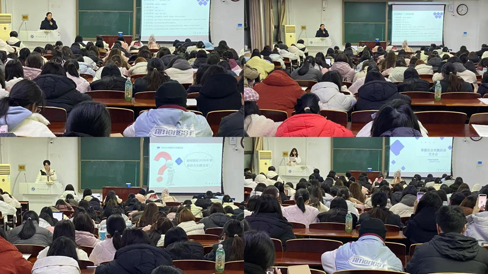 为引导广大学子积极参加社会实践,在实践中受教育、长才干、作贡献,1月9日下午,我院2026年寒假社会实践宣介会在文综楼406室举行。本次宣介会由代如意主持,院团委书记尹祥、2025级全体学生和其他各年级学生干部代表参加了宣介会。