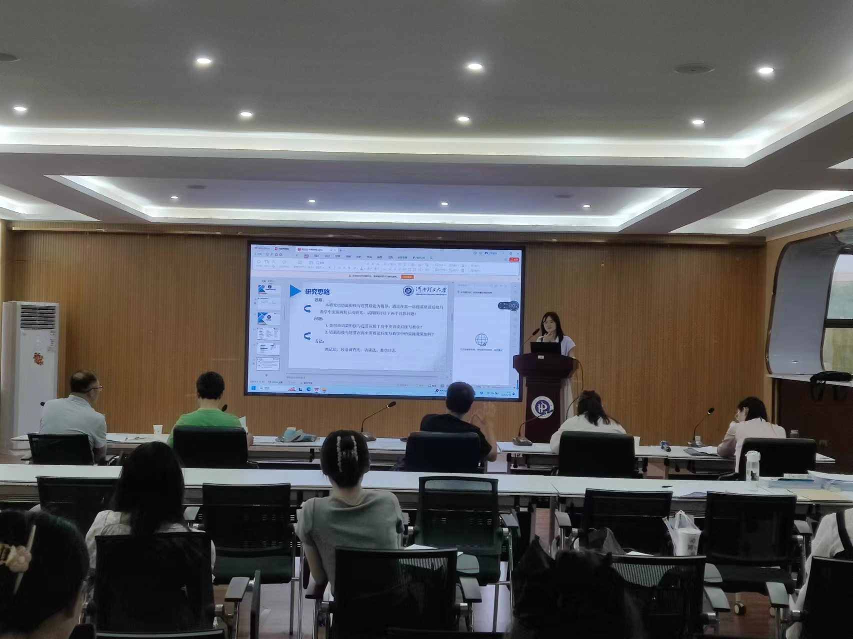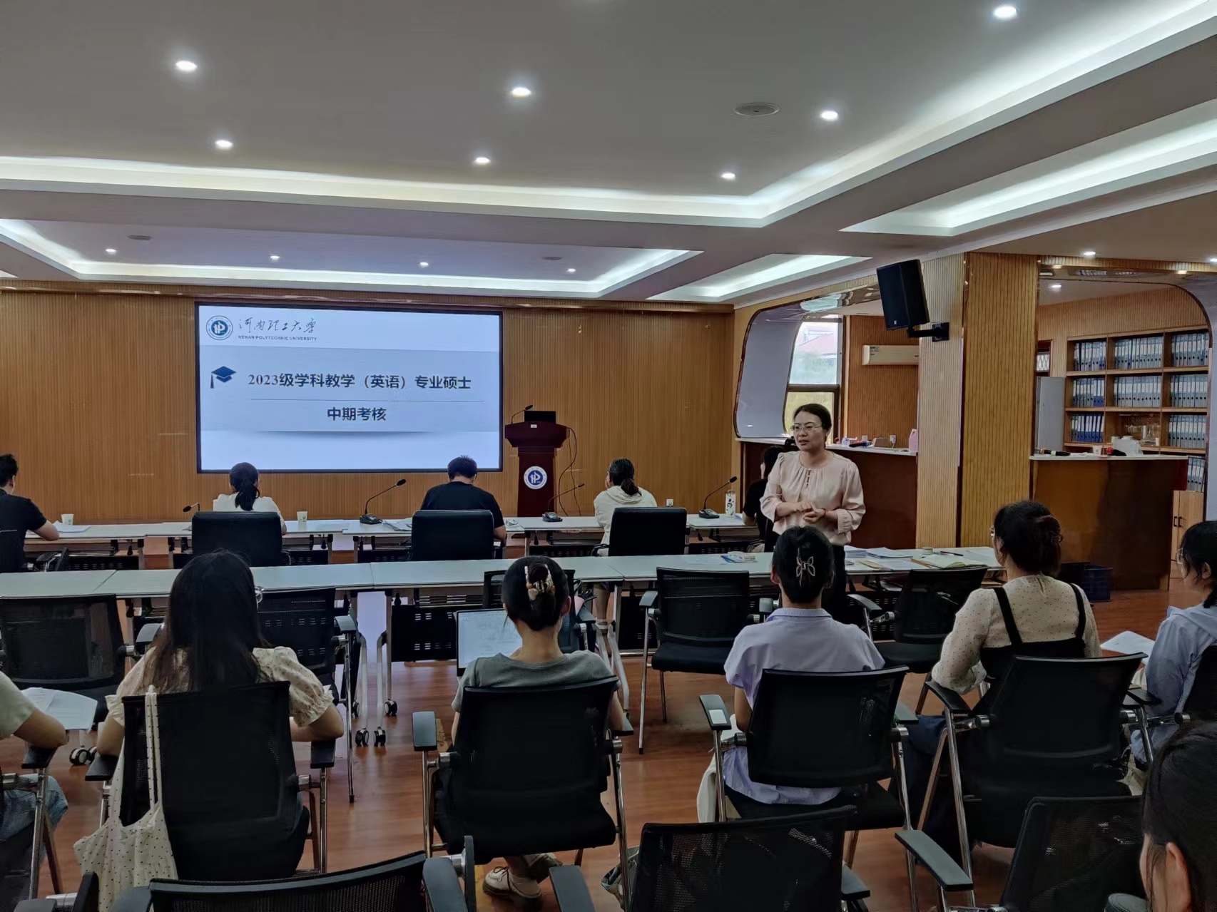 6月18日,我院在文科综合楼302会议室开展2023级学科教学(英语)专业硕士研究生的中期考核工作。本次考核严格遵循研究生培养管理规范,答辩委员会由我校教育硕士研究生导师和行业专家组成。学科教学(英语)方向2023级的14名同学参加了本次答辩汇报工作,2024级全体硕士研究生到场旁听,观摩学习。