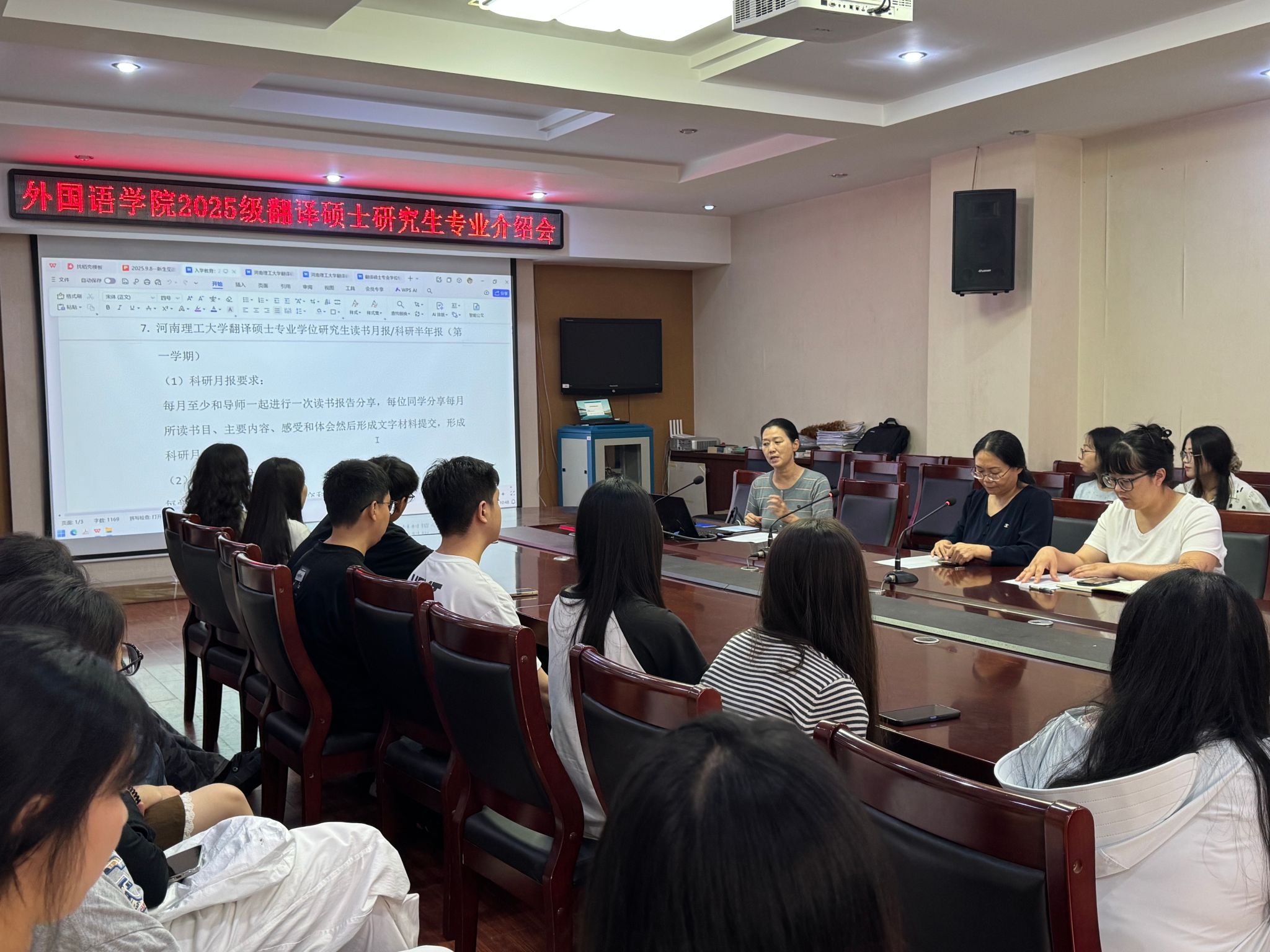 9月8日上午,我院2025级翻译硕士研究生(MTI)专业介绍会于学院311室顺利举行。本次介绍会旨在帮助新生深入了解翻译硕士专业的培养目标、课程体系及未来发展前景,为其研究生阶段的学术与职业规划奠定坚实基础。院长李惠敏、MTI教育中心主任冉玉体出席本次会议,全体2025级翻译硕士研究生参会。会议由冉玉体主持。