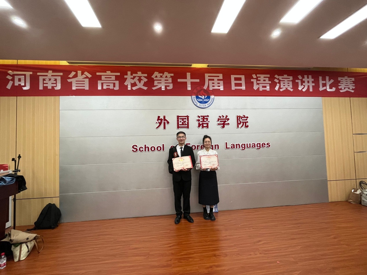 3月30日,由中国高校日语教学研究会河南分会主办、南阳师范学院承办的“河南省高校第十届日语演讲比赛”在南阳师范学院115学术报告厅隆重举行。本次大赛共有来自河南大学、河南师范大学、河南理工大学、河南科技大学、河南农业大学等20所高校的38名学生代表参赛。比赛由上午的命题演讲和下午的即兴演讲两部分构成。在命题演讲环节,选手们以“亲子交流”和“AI和我”为主题,结合自身经历和感悟进行了精彩的演讲,他们或激情澎湃,或娓娓道来,饱满的热情、流利的表达赢得了评委和观众的一致认可。在即兴演讲环节中,参赛选手根据所学知识并结合日语学习中的趣事和收获,将自己的观点作了精彩阐述,展现了其扎实的语言功底和较强的应变能力。经过一天的激烈角逐,我院日语专业范哲踊和杨宁两位同学凭借扎实的语言功底和灵活应变能力,均荣获二等奖。