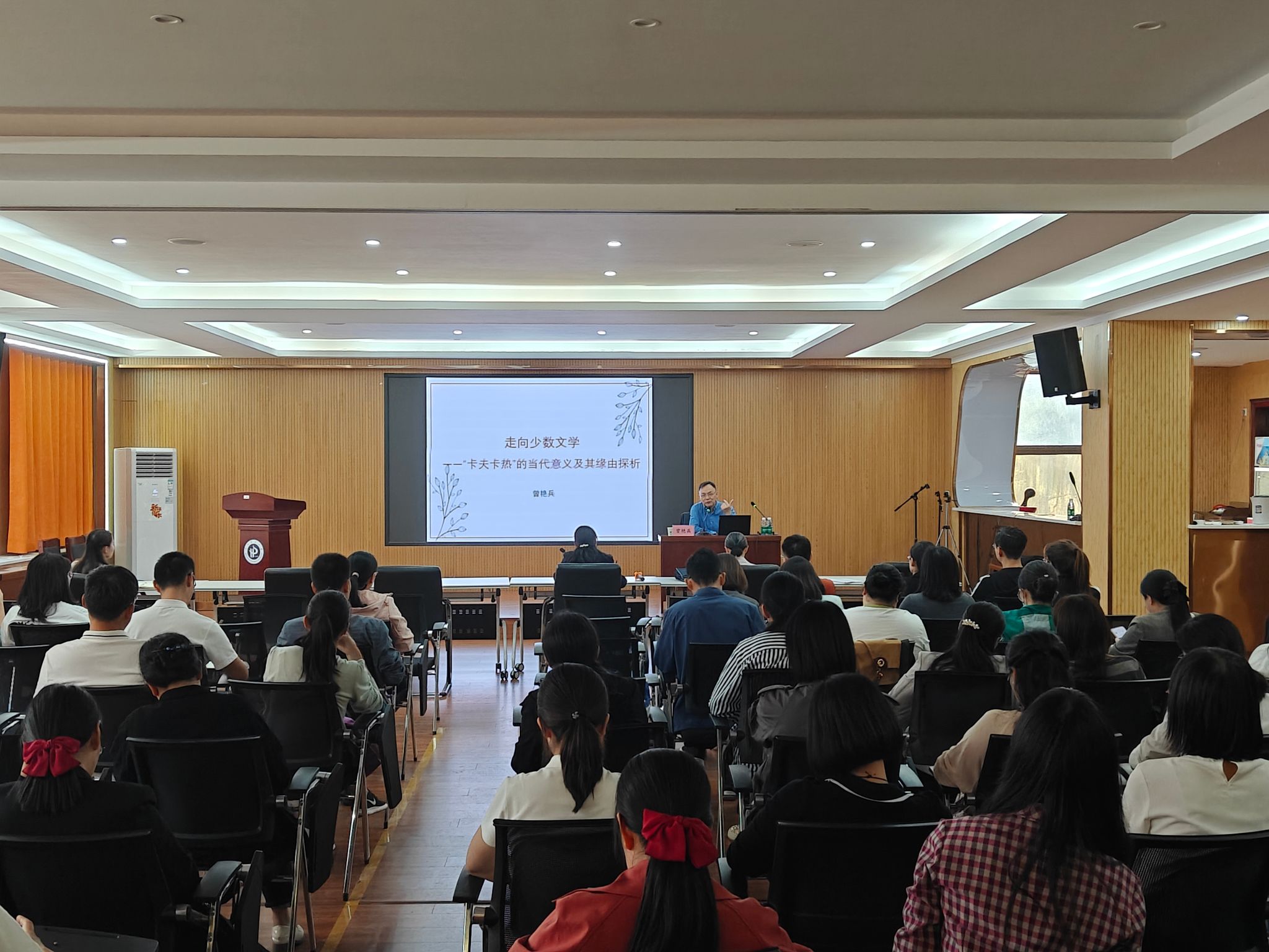 10月15日下午,中国人民大学曾艳兵教授在文综楼302会议室作题为“走向‘少数文学’——‘卡夫卡热’的当代意义及其缘由探析”的学术报告。外国语学院领导及全体教师参加会议。报告会由我院院长李惠敏主持。