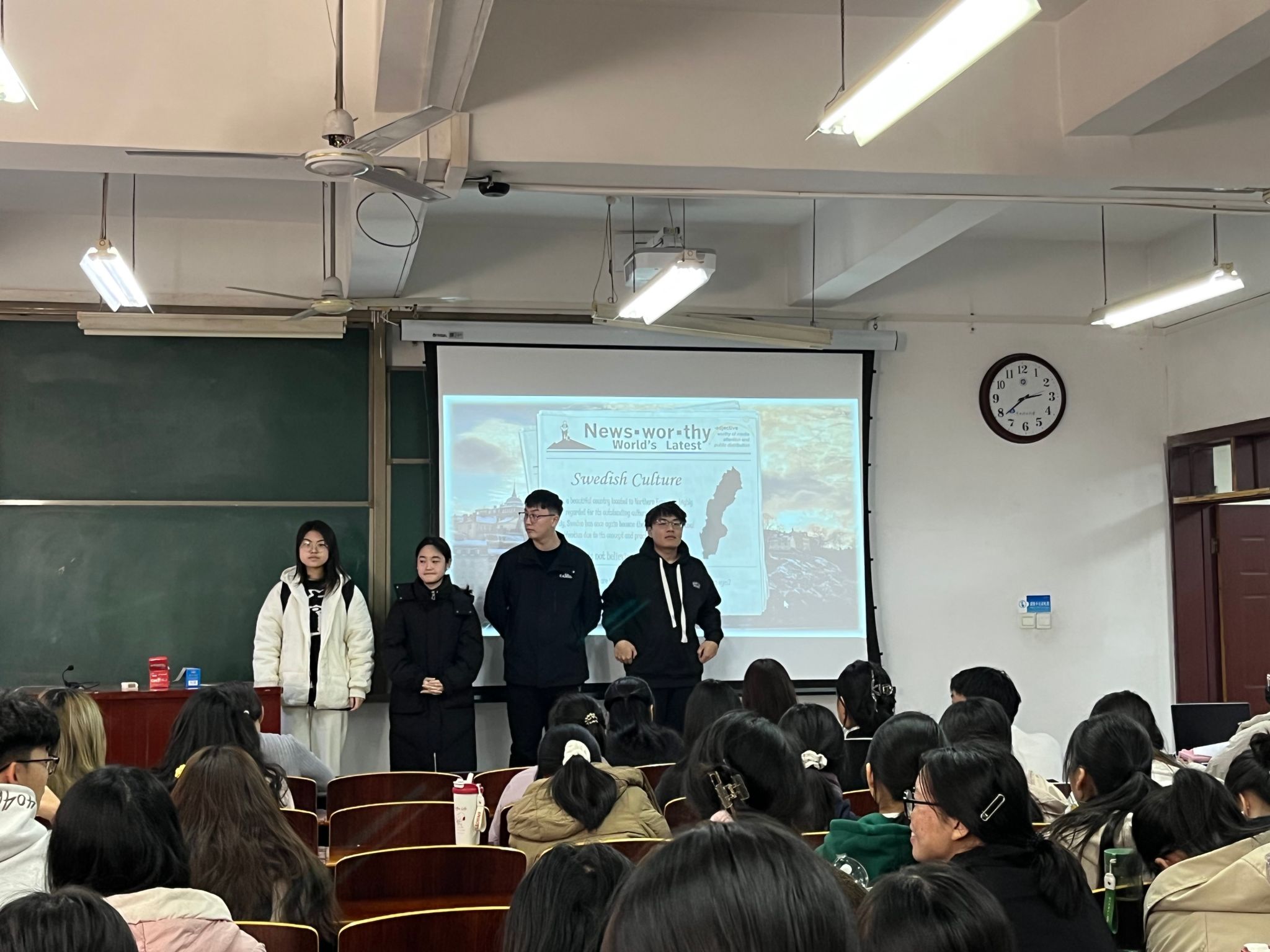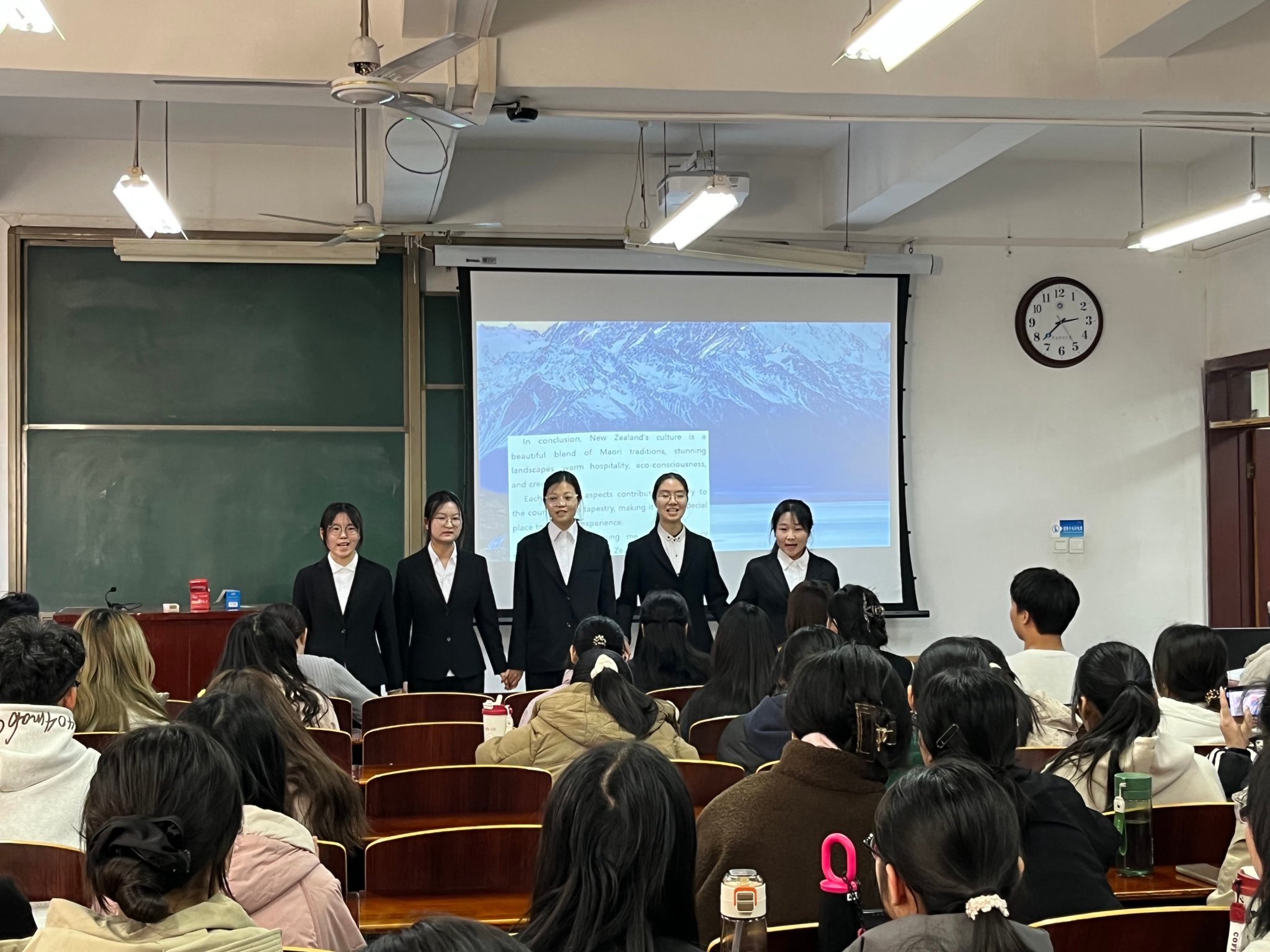 决赛在文综楼306教室举行。活动以英语口述和powerpoint展示相结合的方式,比赛内容为英语世界文化,参赛者以小组为单位,可以选择任何一个英语国家的文化进行介绍。同学们通过搜集与共享信息,协同合作,一起制作powerpoint进行展示。决赛现场气氛热烈,参赛同学面对观众和评委激扬文字,侃侃而谈,或声情并茂,或慷慨激昂,不时有热烈掌声回荡在文综楼306教室。