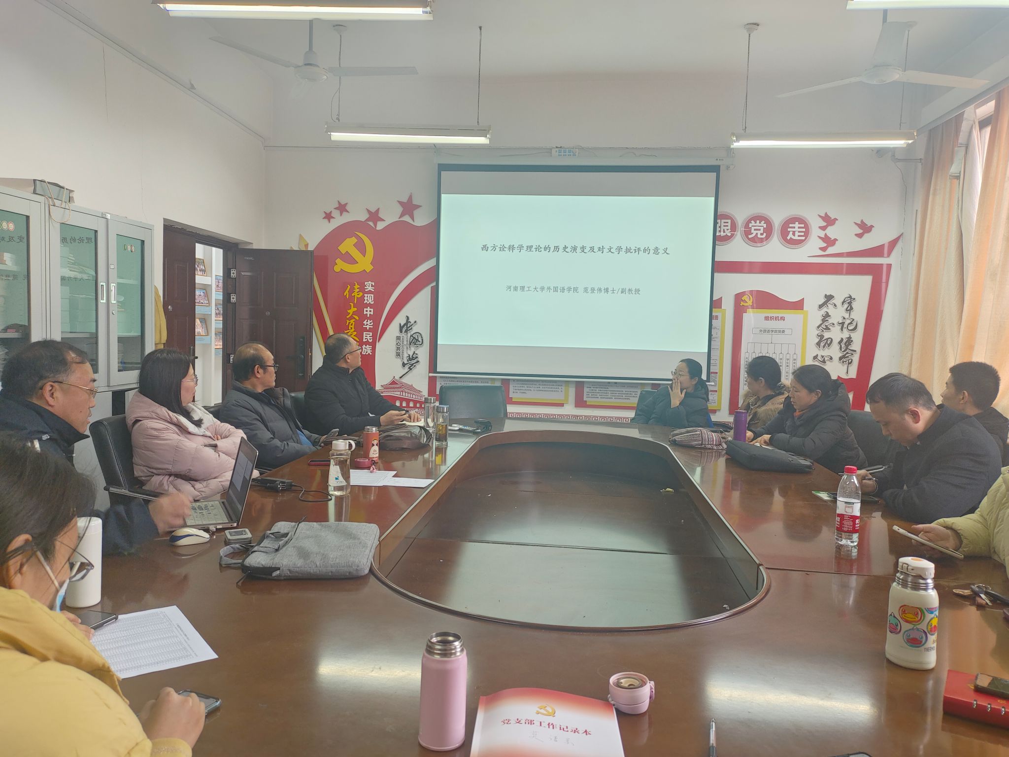 12月10日下午,在文科综合楼318会议室,英语系成功举办了一场主题为“西方诠释学理论的历史演变及对文学批评的意义”的精彩讲座。此次讲座由范登伟老师主讲,英语系全体老师参加。