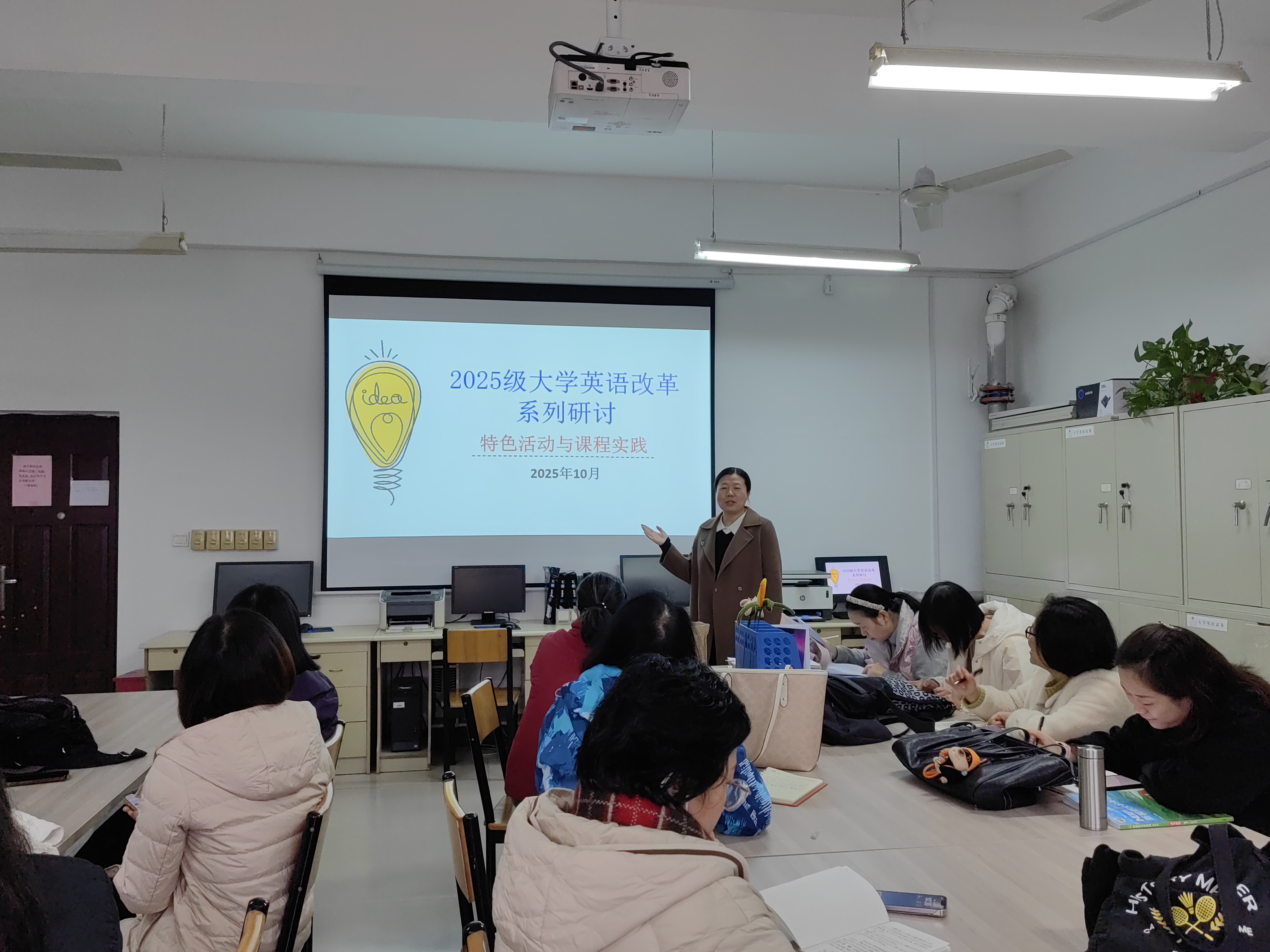 10月28日下午,大学外语第一教研室全体教师在文综楼309室开展2025级大学英语改革系列研讨活动,重点围绕“Spelling Bee”英文单词拼写大赛特色活动方案与课程实践方案展开深入交流,为后续教学实践与赛事组织明确方向。