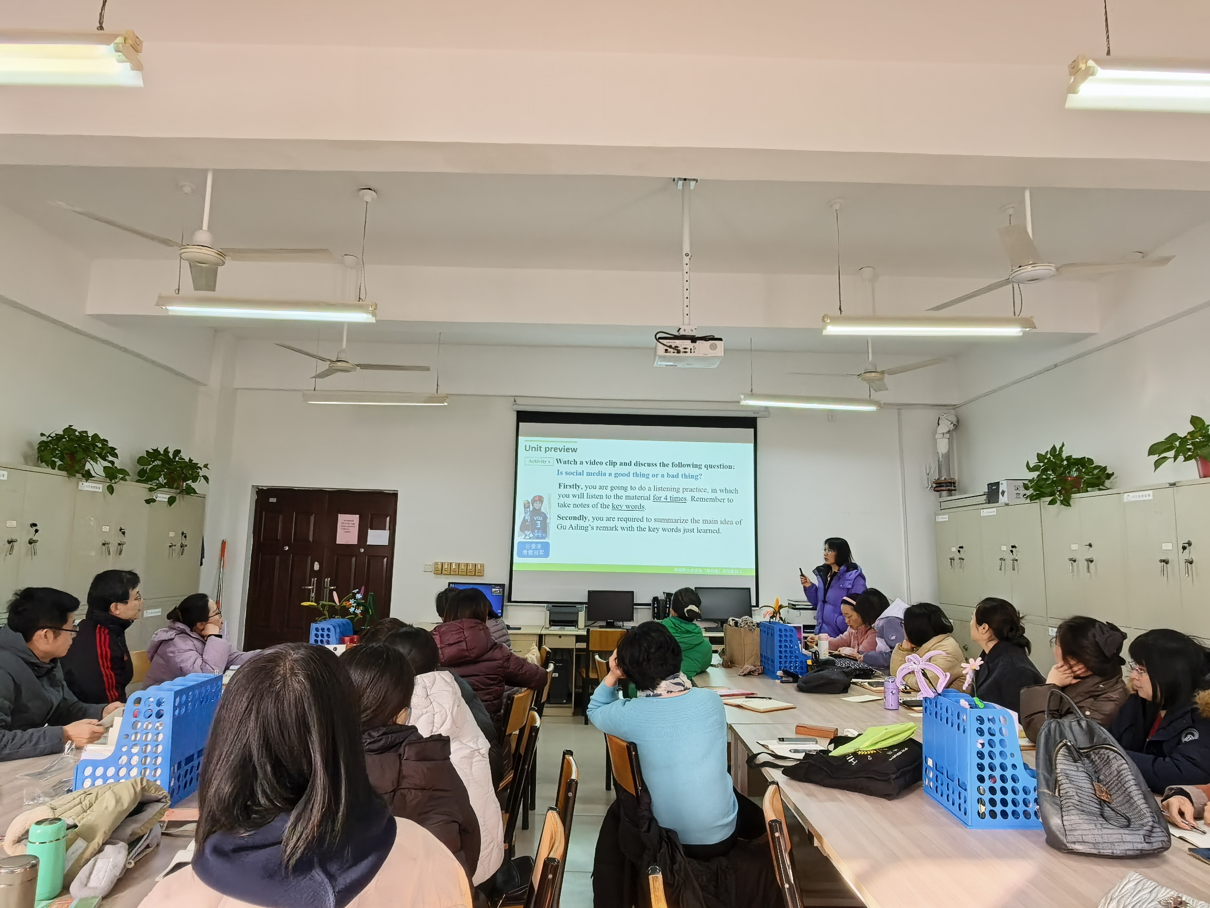 12月2日下午,大学外语第一教研室全体教师在文科综合楼309开展了本学期第四次集体备课活动。本次备课围绕《新视野大学英语(思政智慧版)读写教程1》第四单元Social Media Matters进行,备课组成员郜莉、邢丽莉、燕玉芝、郜芬四位老师负责制定本单元的教学目标,并设计教学过程,制作教学课件。