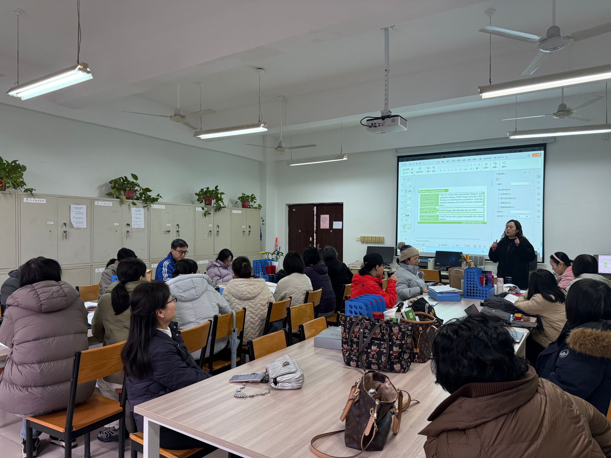 此次活动由教研室主任余阳主持,Book 1 Unit 6备课团队主讲。王静老师围绕单元主题内容Cliff Young, an extraordinary runner,主要从教学设计、课堂思政及教学反思等方面进行了交流分享,陈大维老师对课后作业及反思进行了讲解。活动中,老师们对教学内容进行分析和探讨,从课堂导入、师生互动、知识讲解,到技能训练、巩固拓展,对各个环节进行了补充与完善,提出了宝贵的建议。