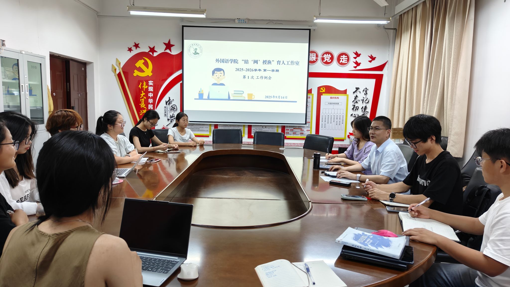 为明确新学期育人工作室工作目标和方向,9月14日下午,我院“结‘网’授渔”育人工作室在文综楼318室召开了2025~2026学年第一学期第1次工作例会,会议由育人工作室主任何军主持,工作室全体成员参加会议。