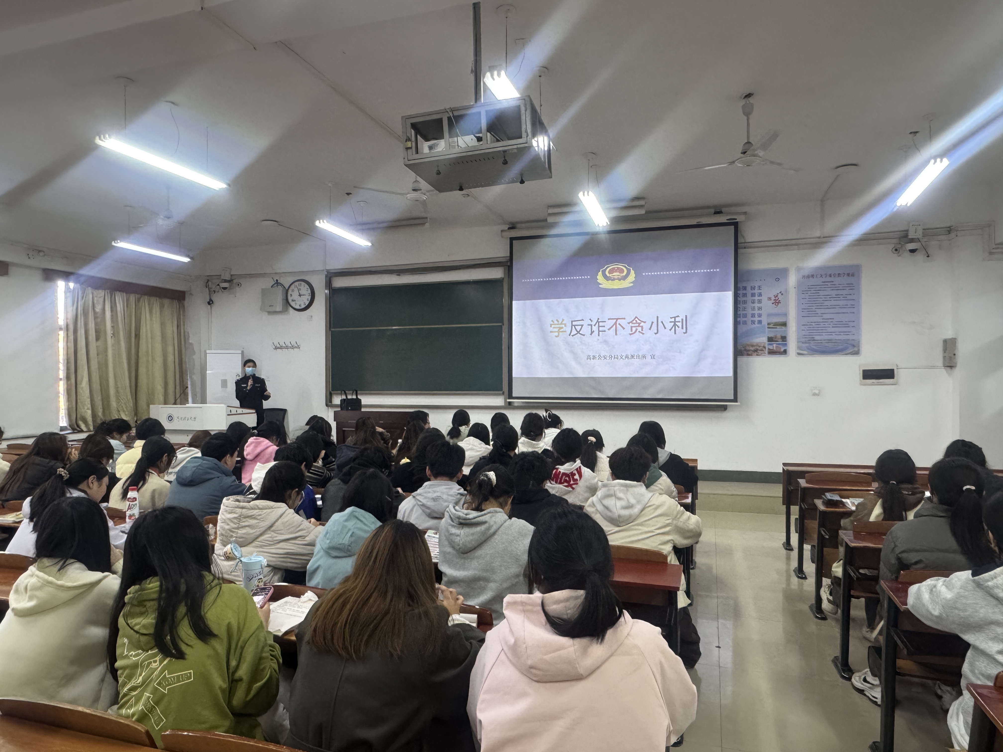为切实提升学生防范电信网络诈骗的意识和能力,11 月 28 日,我院特邀文苑街道派出所警官走进课堂,开展 “学生反诈知识” 专题宣讲活动,为25级新生送上了一堂生动实用的反诈 “必修课”。