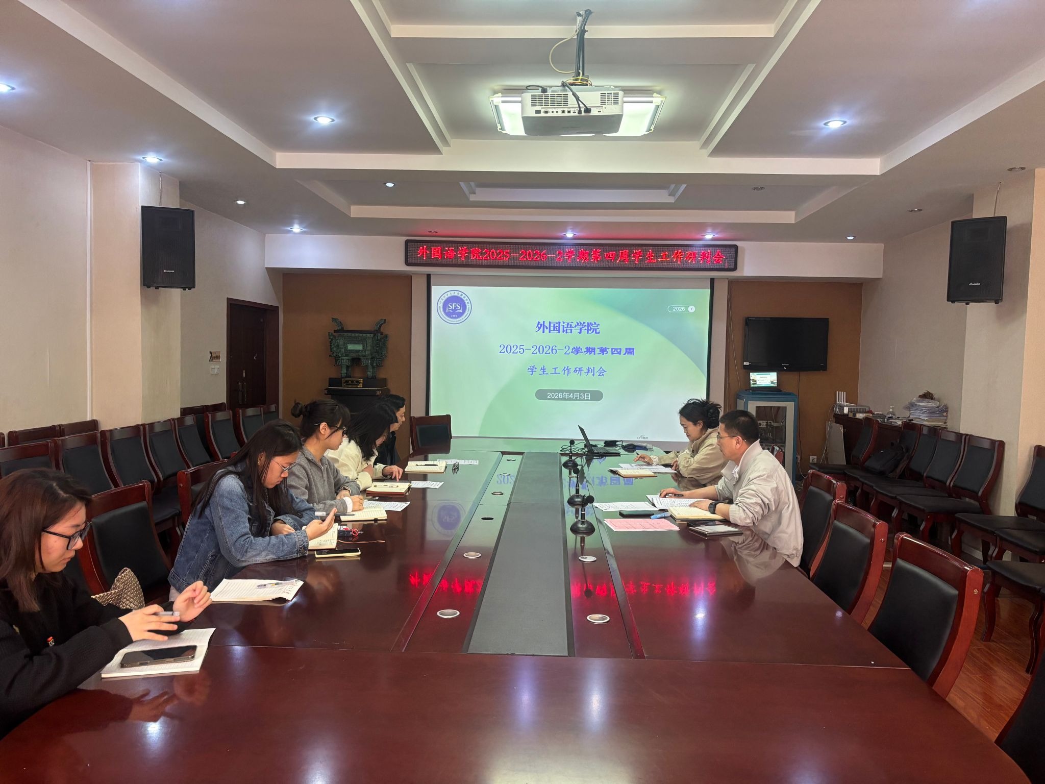 4月3日上午10:30,我院在文科综合楼311会议室召开2025-2026-2学期第四周学生工作研判会。院党委副书记何军,全体专兼职辅导员、学工助管、特聘组织员及辅导员助理参会,会议由王晓玲主持。