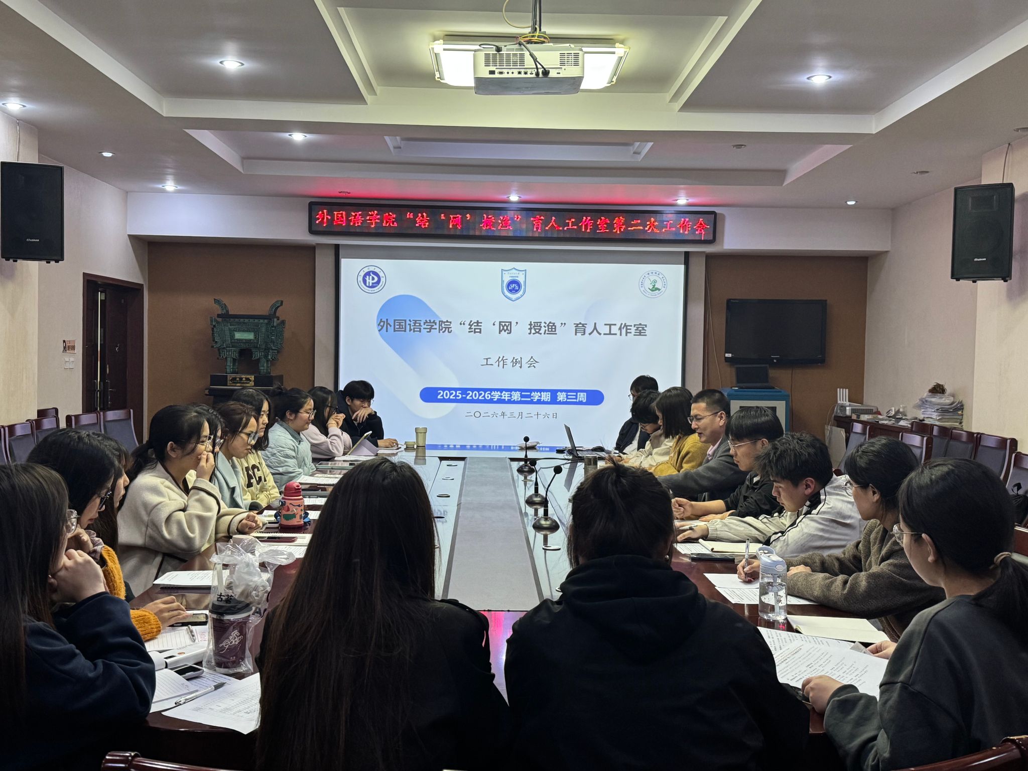为进一步细化任务分工,推进育人工作室各项工作有序开展。3月26日晚上,我院“结‘网’授渔”育人工作室在文综楼311会议室召开了2025-2026学年第二学期第二次工作会。工作室全体成员参会,会议由内部协调组组长赵丽波主持。