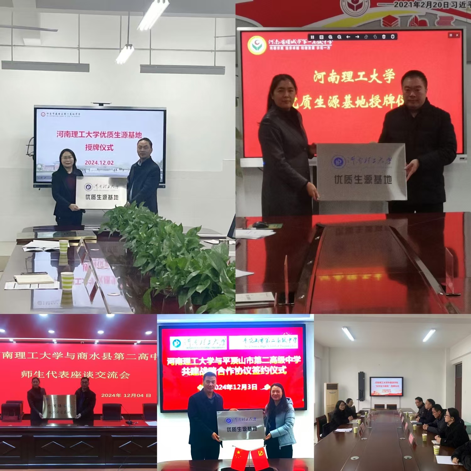 为积极应对河南省考试招生改革,进一步提高生源质量,我院深入贯彻《河南理工大学2025年本科招生宣传工作方案》的精神,积极、主动对接优质生源高中。12月2日至12月5日期间,我院党委书记许荣梅、院长李惠敏及副院长吴敏分别率领三批招生宣传工作小组,前往周口、许昌、平顶山市,走访了项城市第一高级中学、商水县第二高级中学、许昌高级中学、许昌市建安区第一高级中学以及平顶山市第二高级中学等五所生源高中。