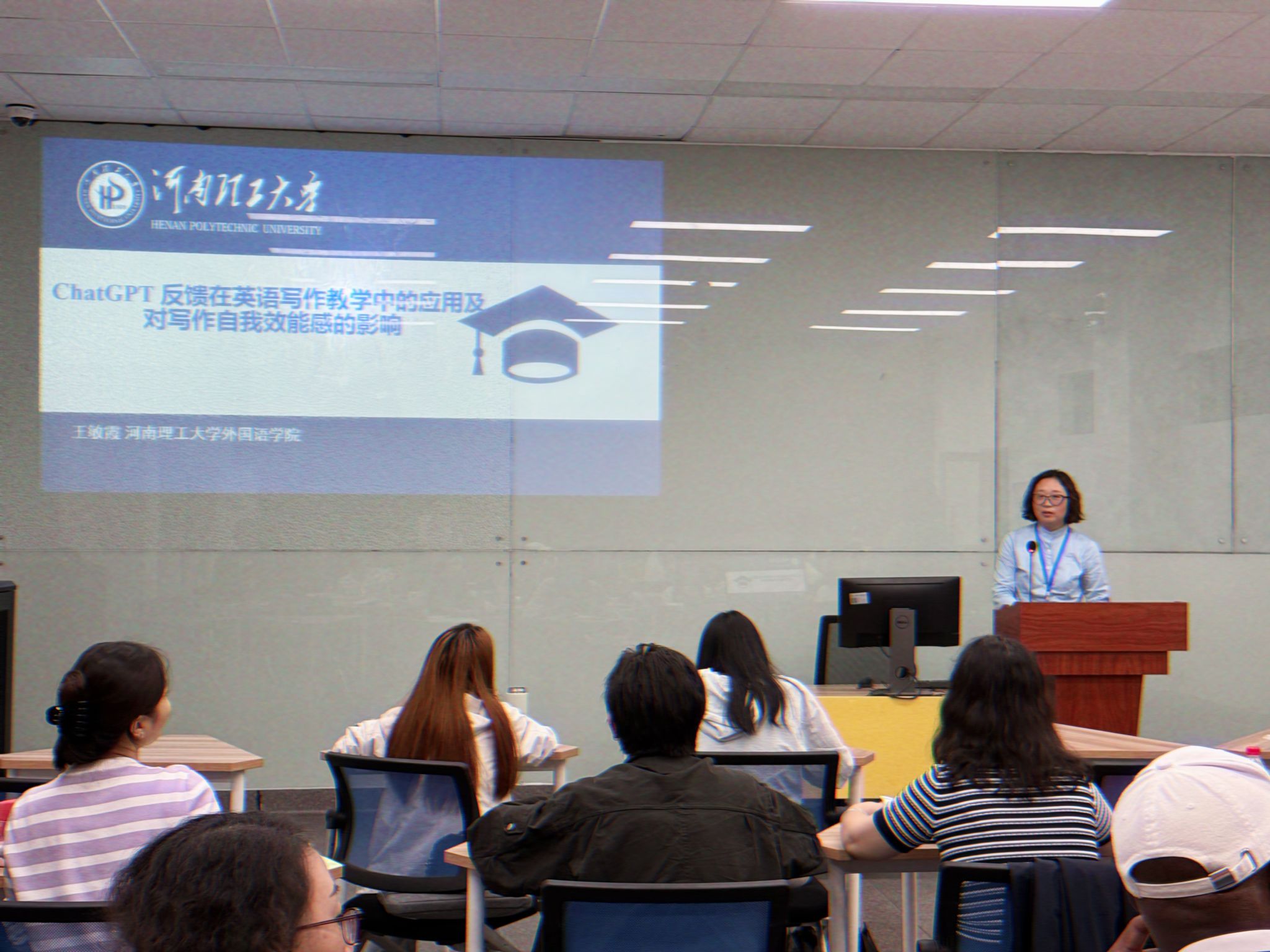 该研究基于假设,即ChatGPT通过实时人机互动,为普遍存在的大班教学提供一种可行的反馈模式,旨在缓解教师反馈负担过重及同辈反馈质量不均的问题。在自我调节理论的指导下,研究设计了ChatGPT反馈教学模式,并分析其对学生写作自我效能感的影响。研究对象为55名英语专业大二学生,实验班采用ChatGPT反馈,对照班采用教师和同辈反馈。实验结束后,通过自我效能感问卷调查和半结构化访谈,对学生的写作自我效能感进行了比较分析。 结果显示,ChatGPT反馈能够有效提升学生的语言运用自我效能感和自我调节效能感,但在写作表现自我效能感方面未表现出显著变化。研究为AI时代的英语写作教学提供了一种新的工具与方法,并为如何更好地将ChatGPT与其他反馈机制相结合提供了参考,得到了与会专家和学者的高度评价。