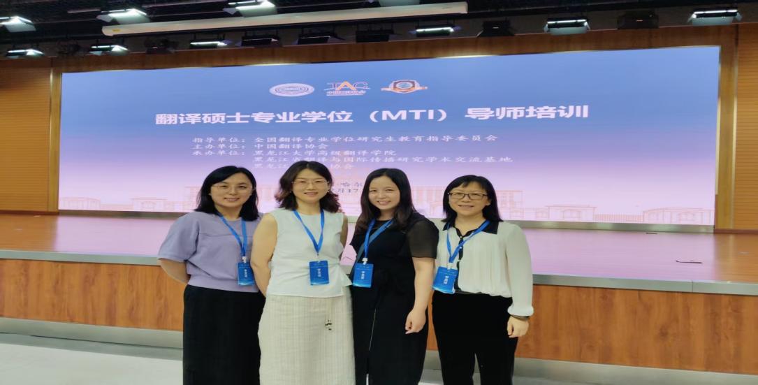 7月16日至7月20日,由中国翻译协会联合全国翻译专业学位研究生教育指导委员会主办的2025年暑期翻译硕士专业学位(MTI)导师培训会在黑龙江大学成功举办。本次培训依托中国翻译协会“译训工程”首批联合培训基地资源优势,围绕新时代翻译人才培养、人工智能技术应用、中国文化国际传播等核心议题展开深入研讨,吸引了来自全国多所高校的翻译硕士导师参与。我院四名翻译硕士导师秦彩玲﹑李芳芳﹑梁萍和李明心参加了此次培训。