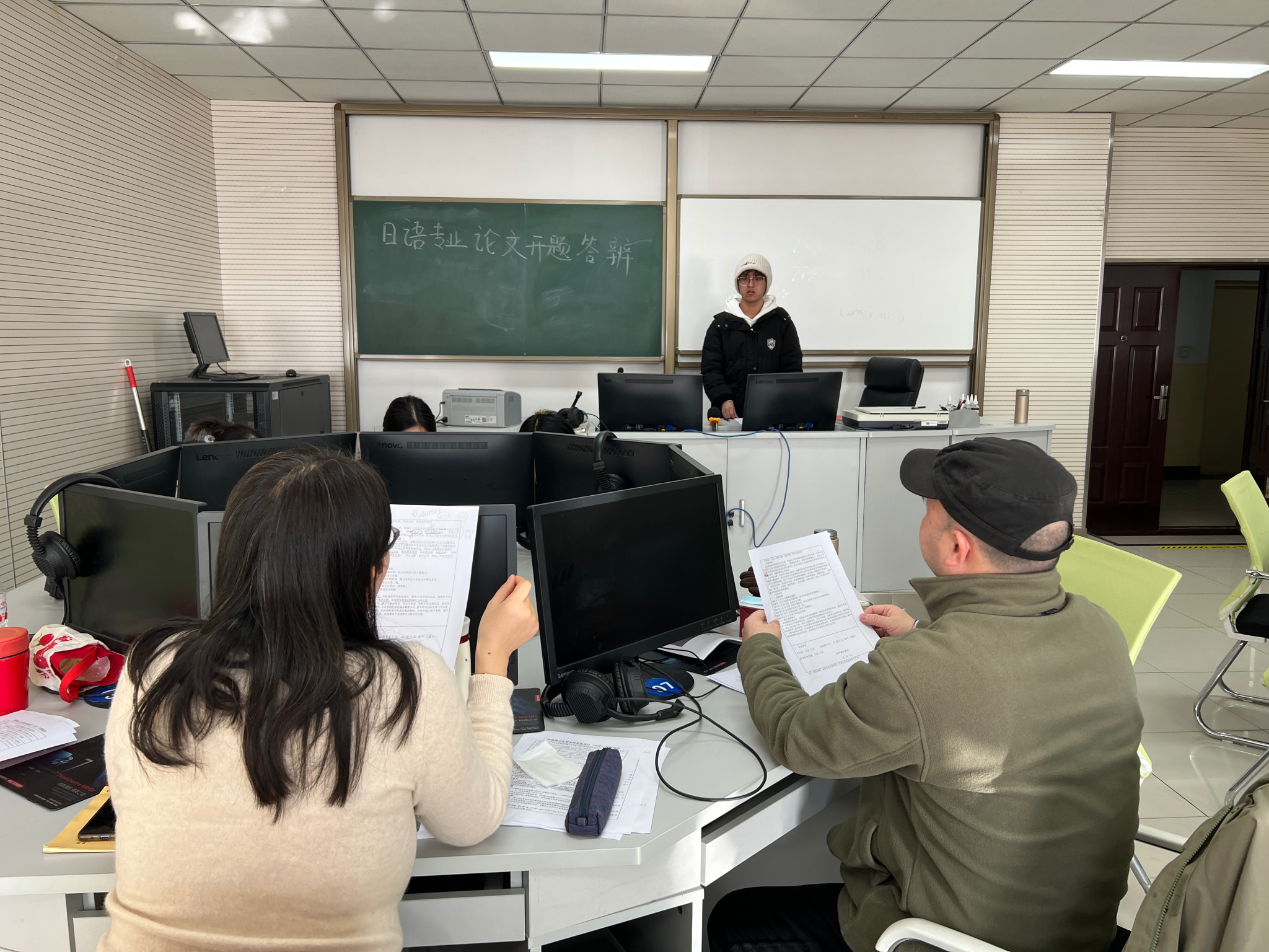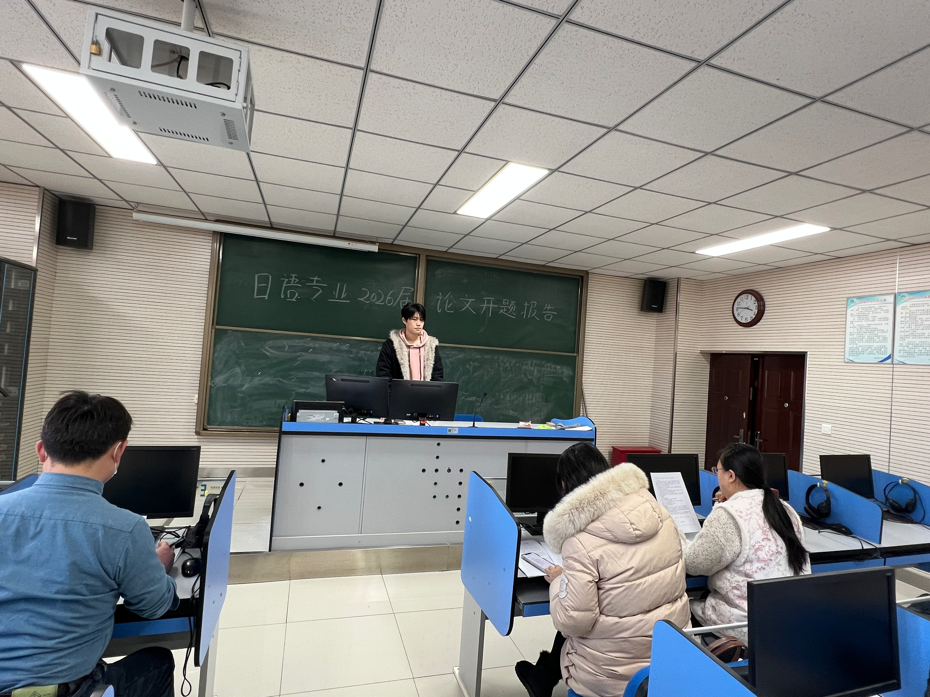 为进一步提升本科毕业论文质量,依据外国语学院2026届本科毕业论文工作规划,日语系于1月9日在文综楼第一语言室、第二语音室和第三语音室开展日语专业2026届本科毕业论文开题答辩。
